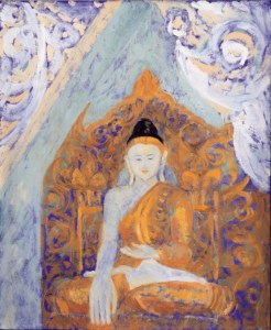 The Buddhas in the temples of Burma reflect the gentle nature of the Burmese people. This is apparent in the peaceful features and gentle smile of the Buddha depicted. The Buddha reaches out to the people who worship him.